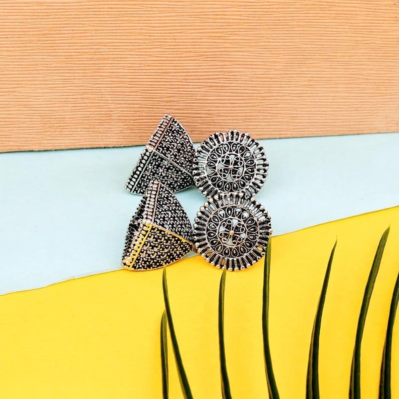 Fashion Frill Silver Oxidised Earrings Jhumka Set For Women Girls Stylish Traditional Pearl Small Jhumki Earings Pair Combo Of 4 – Fast Shipping to USA & Canada