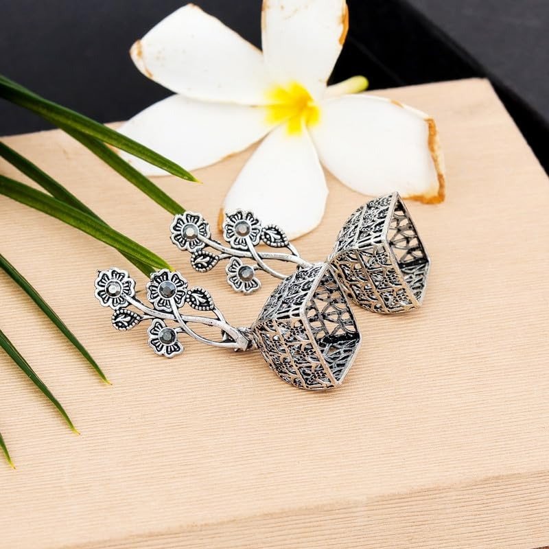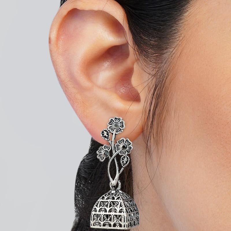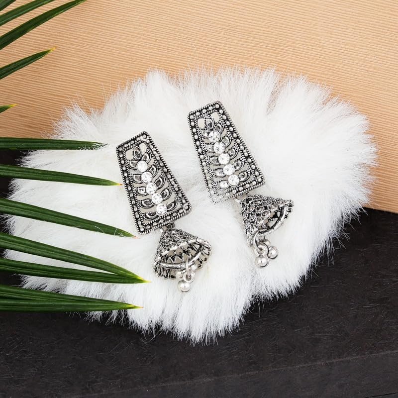 6 reviews for Fashion Frill Silver Oxidised Earrings Jhumka Set For Women Girls Stylish Traditional Pearl Small Jhumki Earings Pair Combo Of 4 – Fast Shipping to USA & Canada