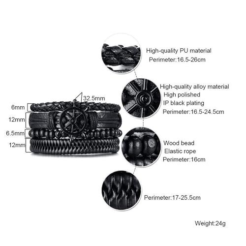 BRACELET: This set includes 4 bracelets crafted from premium wheel leather and wood. When stacked together, they create a multi-layered appearance, or you can mix and match them with any of your other wrap bracelets.
