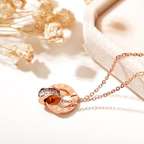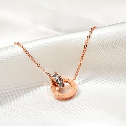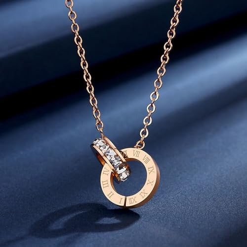 Fashion Frill Stylish Chain Pendant For Women Stainless Steel 18K Rose Gold Plated Roman Circle of Love Chain Necklace For Women Girls Love Gifts Womens Jewellery – Fast Shipping to USA & Canada