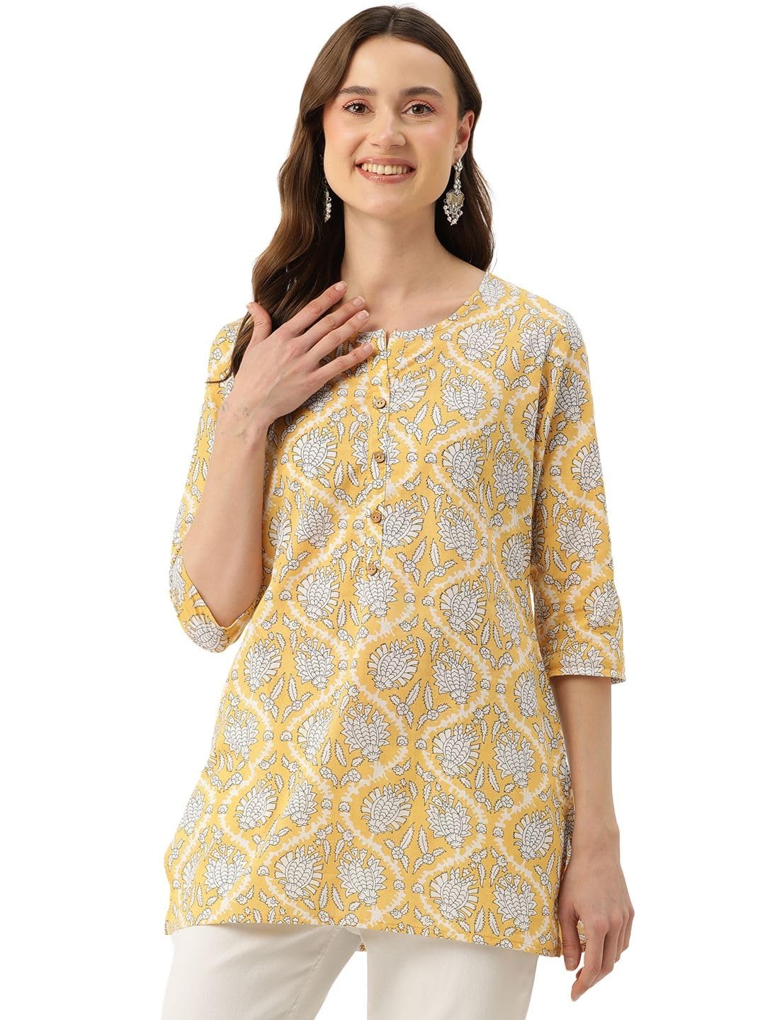 - This floral print top features a comfortable 3/4 sleeve design and a stylish four-button front. Made from soft, breathable cotton, it?s perfect for casual occasions.