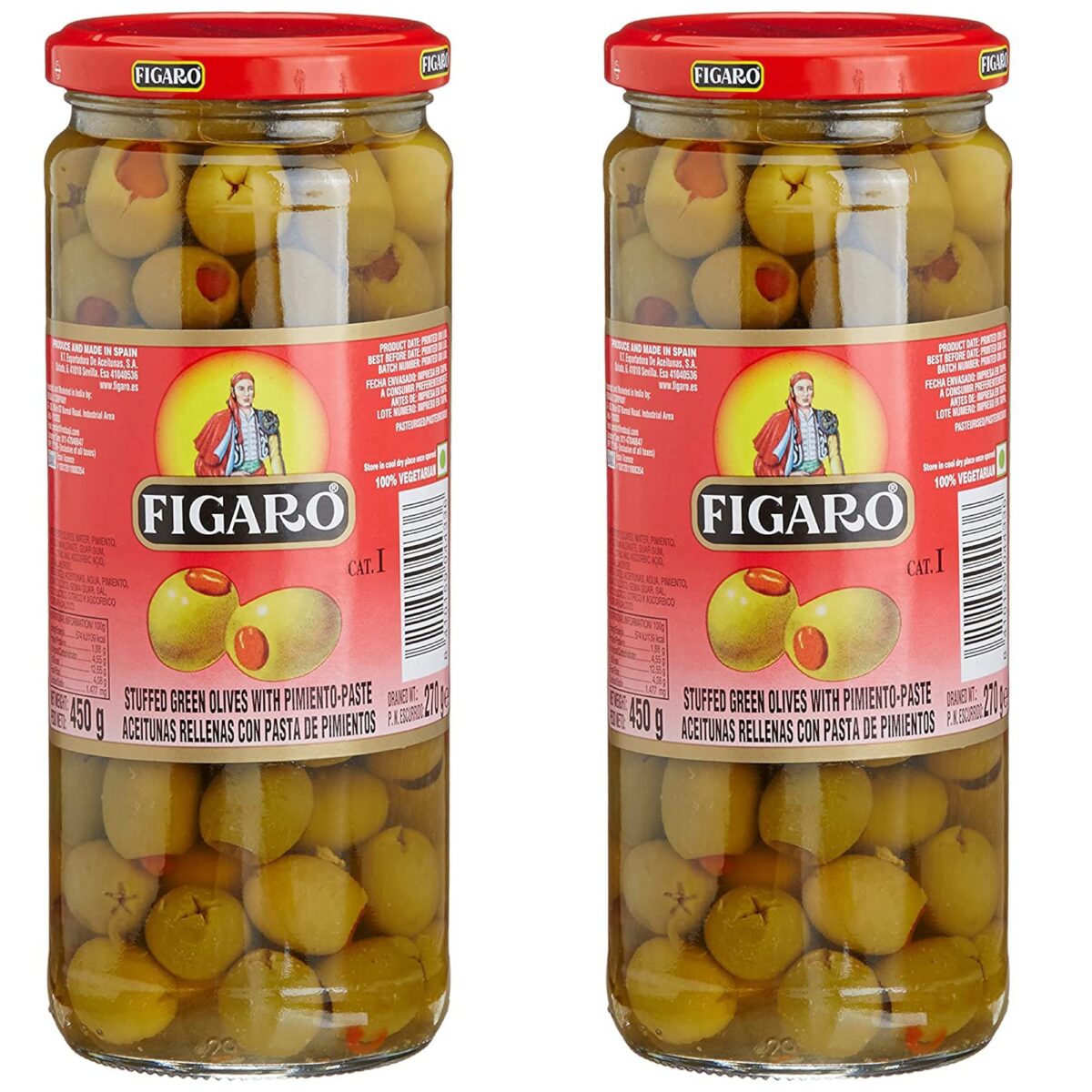 Figaro Stuffed Green Olives with Pimiento Paste, 15.87 oz 450 g, 2 Pack – Fast Shipping to USA & Canada