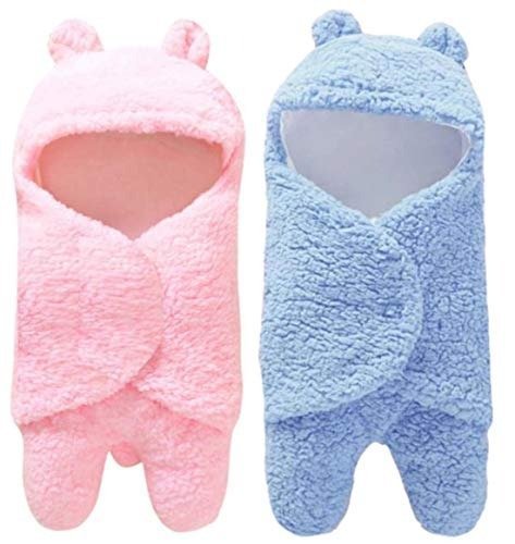 First Kick Baby Blankets New Born Combo Pack of Hooded Supersoft Wearable Wrapper Durable Fleece Polyester Cum Baby Sleeping Bag for Babies (70 cm x 76 cm, 0-6 Months) Combo of 2 Pink Blue – Fast Shipping to USA & Canada