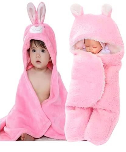 First Kick Baby Blankets New Born Combo Pack of Hooded Wrapper Durable Fleece Polyester Sleeping Bag and Baby Bath Towel for 0-6 Months Baby Boys and Baby Girls Pack of 2 Pink Rabbit, Unicorn Pink – Fast Shipping to USA & Canada