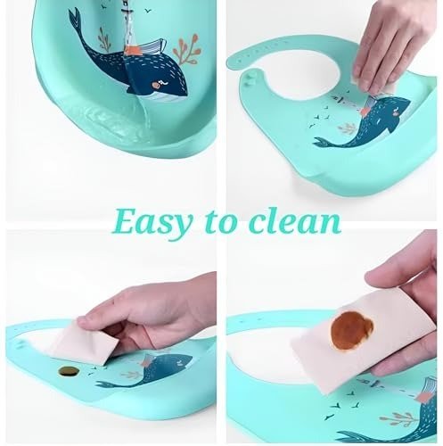 - Waterproof & Long-Lasting: Crafted from premium-grade PVC silicone, these bibs are fully waterproof, guaranteeing a mess-free feeding experience.