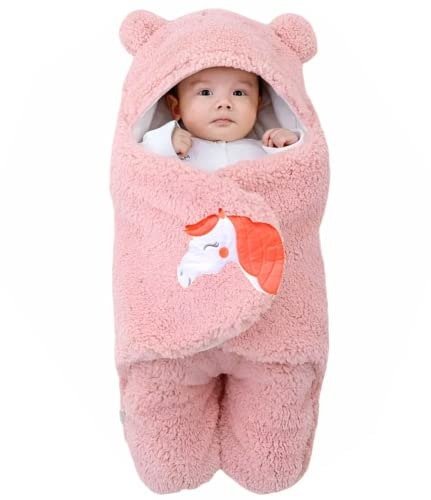First Kick Newborn Baby Sleeping Bag Pack of Wearable Flannel 0-6 Months Hooded Swaddle Wrapper Baby Blanket, Onion Pink – Fast Shipping to USA & Canada