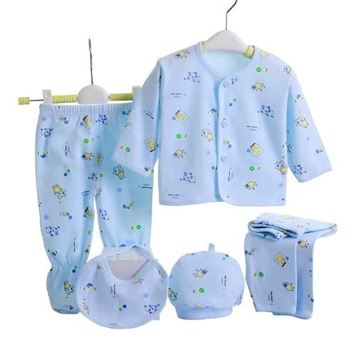 First Kick Presents New Born Baby Summer Wear Baby Clothes 5Pcs Sets 100% Cotton Baby Boys Girls Unisex Baby Cotton/Summer Suit Infant Clothes First Gift for New Born Baby – Fast Shipping to USA & Canada