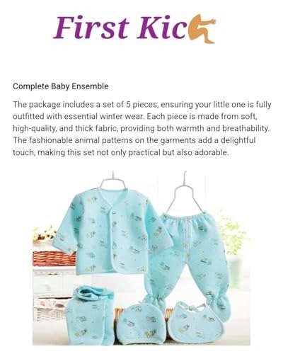 Be the first to review “First Kick Presents New Born Baby Summer Wear Baby Clothes 5Pcs Sets 100% Cotton Baby Boys Girls Unisex Baby Cotton/Summer Suit Infant Clothes First Gift for New Born Baby – Fast Shipping to USA & Canada” Cancel reply