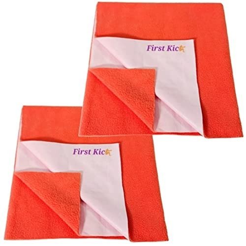First Kick Waterproof Baby Bed Protector/Mattress Cotton Dry Sheet (70cm X 50 cm) for Born Baby/Kids- (Orange) – Small – Pack of 2 – Fast Shipping to USA & Canada