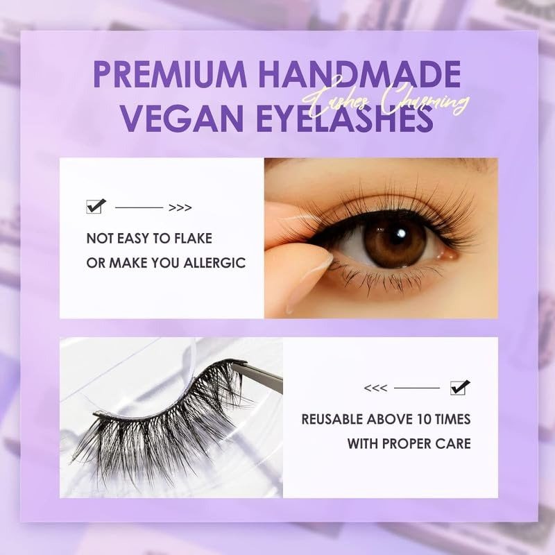 - VEGAN & CRUELTY-FREE: Enhance your look with our luxurious faux mink lashes. Made from high-quality synthetic fibers, these lashes are both cruelty-free and can be reused up to 10 times.