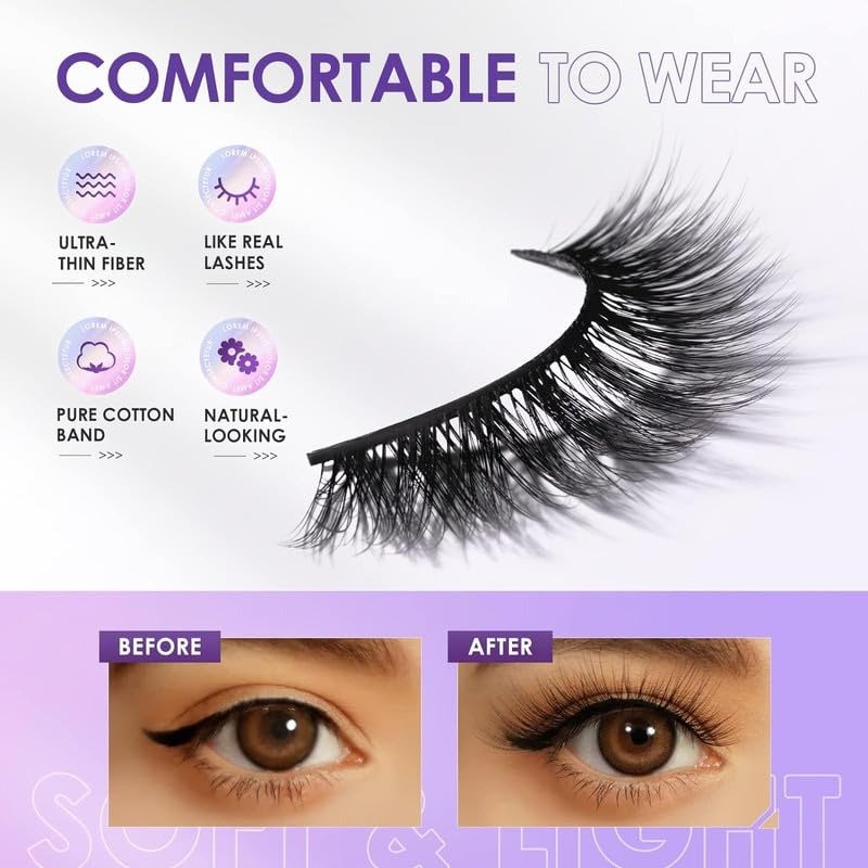 - COZY BAND: Wave farewell to irritation! Our lashes are designed with a soft, flexible cotton band for a comfortable, hassle-free wear.