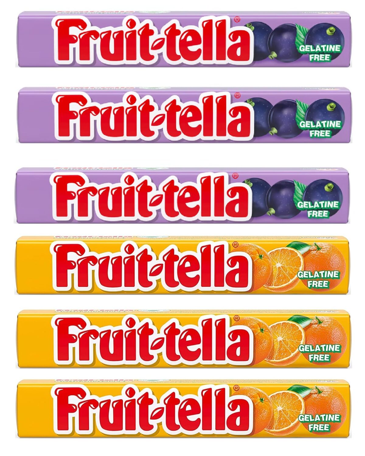 - Fruit-Tella Blackcurrant (Set of 3), Fruit-Tella Orange Flavor (Set of 3) Chewy Toffee Sticks (6 x 32.4g)