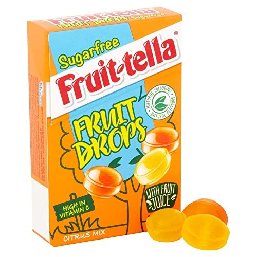 Inspired by fruit enthusiasts, Fruit-tella has crafted delectable confections using genuine fruit juice. Distinctively Fruit-tella, these sugar-free fruit drops are overflowing with tantalizing citrus flavors. Additionally, they are rich in vitamin C. Sugar-free. Crafted with real fruit juice. High in vitamin C. Made with natural colors and flavorings.