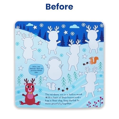• INSTRUCTIONS FOR USE: The child should finish the picture boards by attaching the appropriate stickers. These stickers are simple to remove and apply.