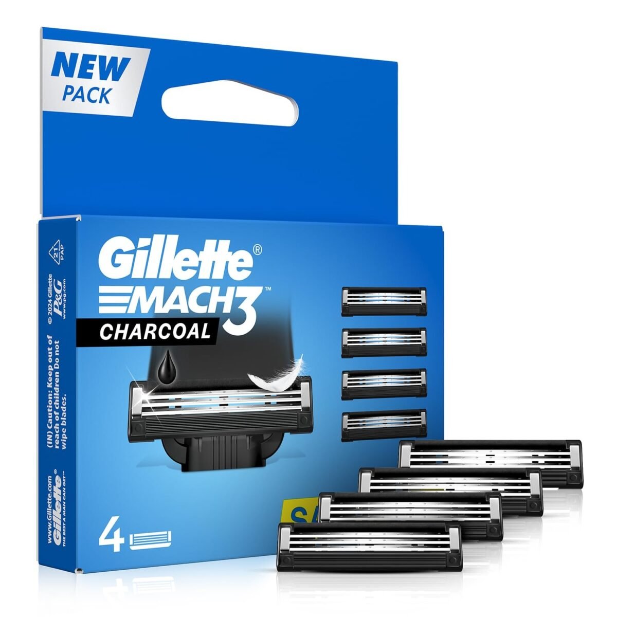 Gillette Mach3 Charcoal Men Shaving Razor Blades – 4S Pack Count (Cartridge) – Fast Shipping to USA & Canada