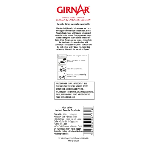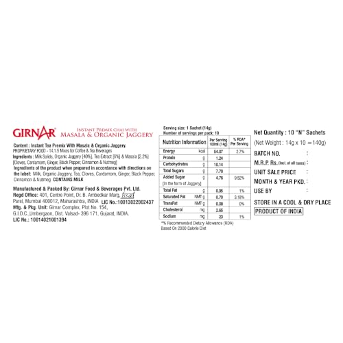 When the British brought tea to India, Desi Chai emerged; and with the introduction of Chai into Indian households, Masala Chai was created. The arrival of Girnar’s Masala Chai Premix, featuring Organic Jaggery, gave rise to an instant ghar-jaisi-chai for those mindful of their sugar intake! Girnar?s Masala Chai Premix is a convenient (pre-mixed) blend of robust Desi Chai, enhanced by the invigorating essence of Cardamom, Cloves, Black Pepper, and Ginger. It concludes with the delicate notes of Cinnamon and Nutmeg, along with a gentle sweetness from the Organic Jaggery. Whether it?s 4 am or 4 pm, in the valley or among the clouds, sailing or flying, enjoying cozy moments at home or embarking on solo adventures: ghar-jaisi-chai with Organic Jaggery can now be effortlessly prepared by simply adding hot water! It?s no surprise that you don?t need to return home to experience that comforting feeling of being at home.