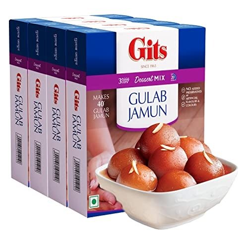 Gits Instant Gulab Jamun Dessert Mix, Pure Veg, Indian Dessert And Mithai, 800G (Pack Of 4, 200Gm Each) – Fast Shipping to USA & Canada