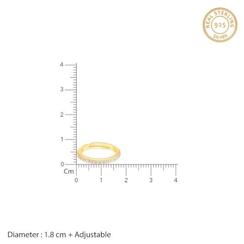 - PRODUCT INFORMATION: Crafted from 925 Silver and adorned with Gold Plating, this piece is ideal for those with sensitive skin. It features an adjustable size to guarantee a comfortable fit, with a ring diameter of 1.8 cm plus adjustability.