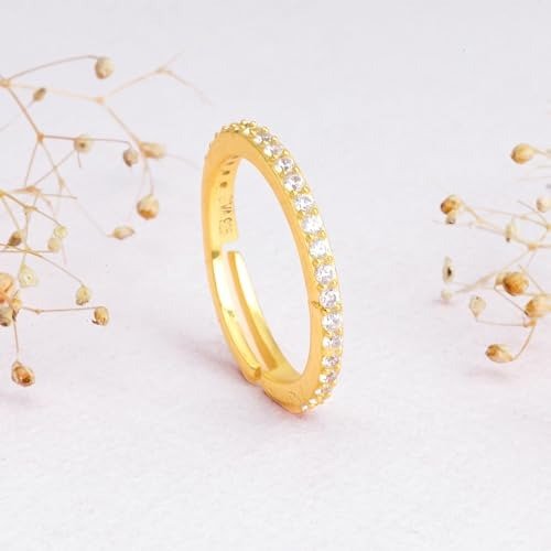 GIVA 925 Silver Golden Minimal Zirconia Ring, Adjustable| Gifts for Women and Girls | With Certificate of Authenticity and 925 Stamp | 6 Months Warranty*