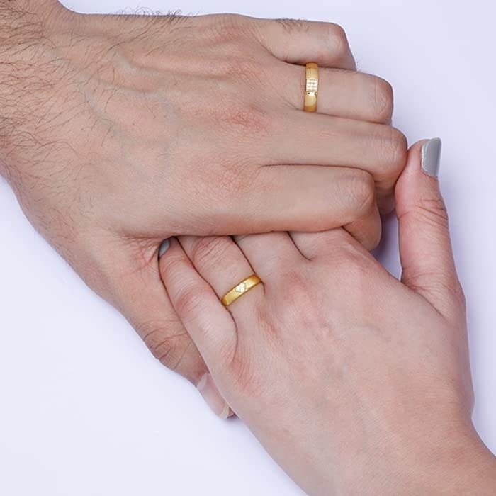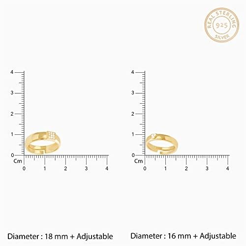- PRODUCT SPECIFICATIONS: Crafted from 925 Silver and adorned with Gold plating, this ring features an adjustable size for a perfect fit. It showcases AAA+ Quality Zircons. The men’s ring measures 18 mm and is adjustable, while the women’s ring measures 16 mm and is also adjustable. A Rhodium finish is applied to resist tarnishing.