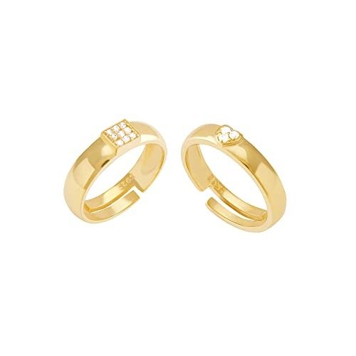 GIVA 925 Silver Golden Shining Love Couple Rings, Adjustable | Promise Rings for Men & Women | With Certificate of Authenticity and 925 Stamp | 6 Month Warranty*