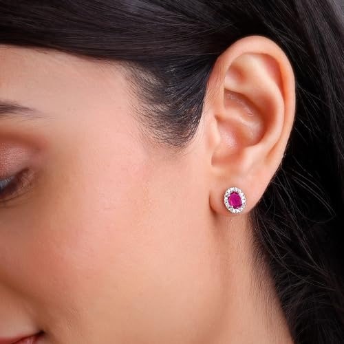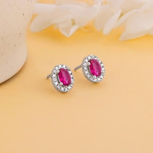 GIVA 925 Silver Pink Oval Halo Studs| Gifts for Girlfriend, Gifts for Women and Girls | With Certificate of Authenticity and 925 Stamp | 6 Month Warranty