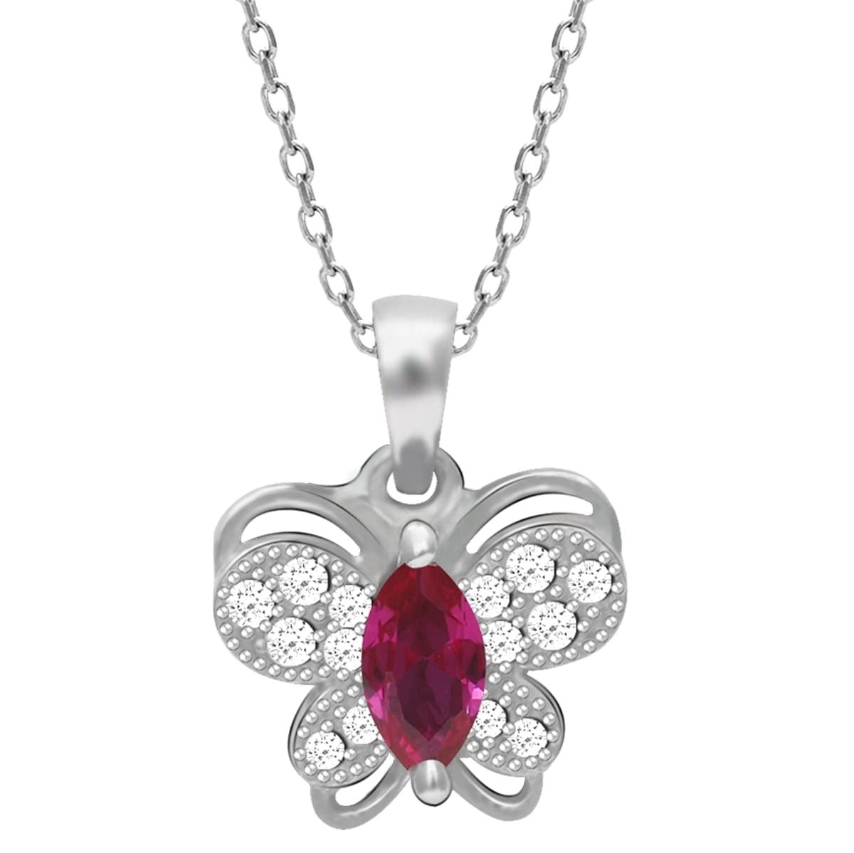 GIVA 925 Silver Pop Pink Studded Butterfly Pendant With Link Chain | Gifts for Girlfriend, Gifts for Women and Girls |With Certificate of Authenticity and 925 Stamp | 6 Month Warranty*
