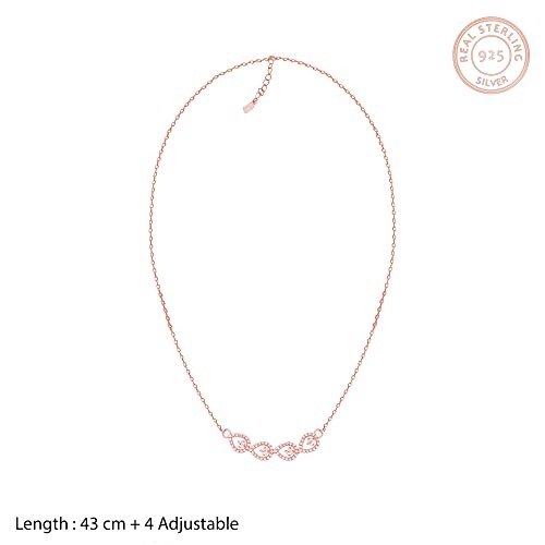 - PRODUCT INFORMATION: Crafted from 925 sterling silver and adorned with a layer of Rose Gold plating, this necklace is ideal for those with sensitive skin. The necklace measures 43 cm in length, featuring an adjustable section of 4 cm. Its dimensions are 0.8 cm by 4.7 cm. Additionally, it is treated with a Rhodium e-coat to resist tarnishing.