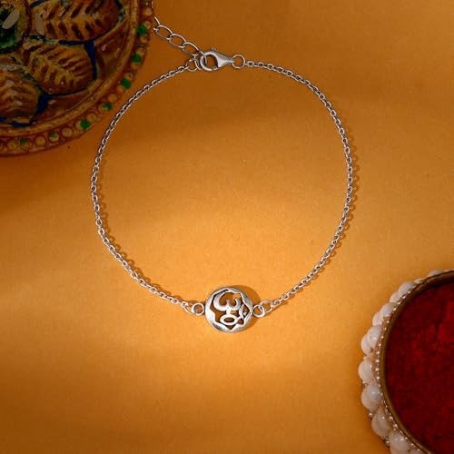 GIVA 925 Silver Sphere Om Rakhi Bracelet with Roli Chawal | Quirky Rakshabandhan Rakhi for Brother | Silver Rakhi for Boys & Men With Certificate of Authenticity and 925 Stamp
