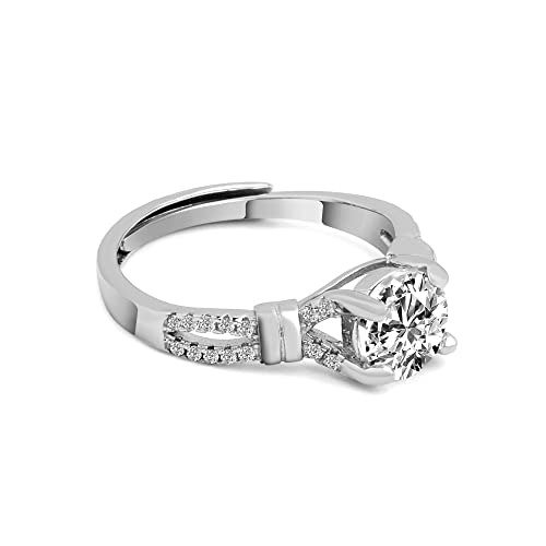 GIVA 925 Silver Zircon Studded Ring, Adjustable | Gifts for Girlfriend, Gifts for Women and Girls | With Certificate of Authenticity and 925 Stamp | 6 Month Warranty*
