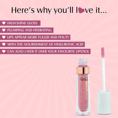 Glam 21 Lip Plumper With Hyaluronic Acid | Lightweight Lip Gloss With High Shine Glossy Finish For Fuller And Plump Lips | 03 Red Lights – 5 Gm – Fast Shipping to USA & Canada