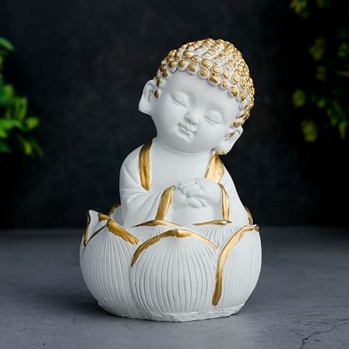 These beautiful Laughing buddha Baby Monk statues for living room from the house Global Grabbers on Amazon are a wonderful gifts and very beautiful home decor Items for living room bedroom These Laughing buddha Baby Monk show pieces for home decor are made From highest grade polyresin material and is handcrafted by skilled artisans using conventional techniques. Everyone wants perfect peace of mind that’s free from ignorance, greed, hatred and other afflictive states. Laughing buddha Baby Monk Idol as home decoration items are always been a great symbol of peace. So, what could be a better gift or a better option to bring home than the idol of Laughing buddha Baby Monk. This Laughing buddha Baby Monk statue is a perfect piece of art for Home decoration and house warming gifts for new home . Elevate your home and garden Decor with our exquisitely crafted Laughing buddha Baby Monk statue, a perfect symbol of peace and spiritual enlightenment. this detailed Laughing buddha Baby Monk statue is designed to bring serenity and mindfulness to any space. Whether placed in your living room, meditation room, office, or garden, its intricate hand-carved features and serene expression will create a calming atmosphere. Ideal for yoga studios and as a thoughtful anniversary gifts for parents wife or housewarming these Laughing buddha Baby Monk statues not only enhances aesthetics but also promotes relaxation and positive energy. Embrace tranquility and spiritual growth by adding this elegant Laughing buddha Baby Monk statue to your new home decor collection today.