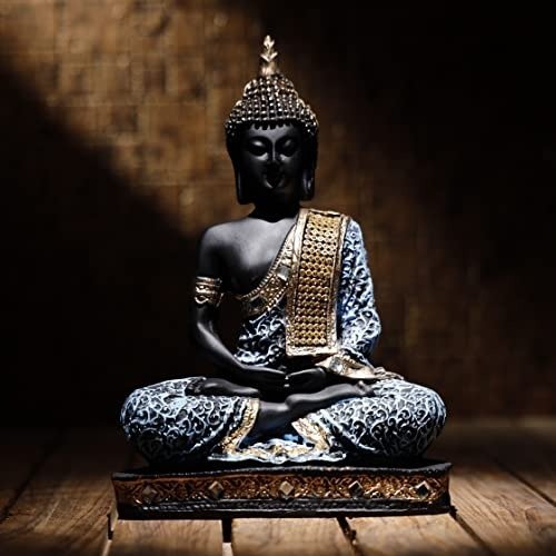 Global Grabbers New 25 Centimetre Meditating Sitting Buddha Statue showpiece Idol Home Decor Items for Living Room and Gifts (Sky Blue Black) – Fast Shipping to USA, Canada & India