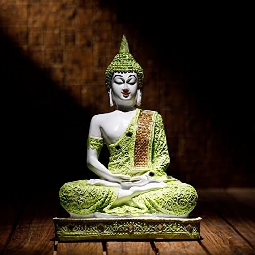 Global Grabbers New 25 Centimetre Meditating Sitting Buddha Statue showpiece Idol Home Decoration Items for Living Room Decor and Gifts (Green White Matte) – Fast Shipping to USA, Canada & India