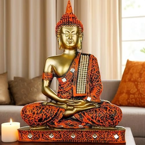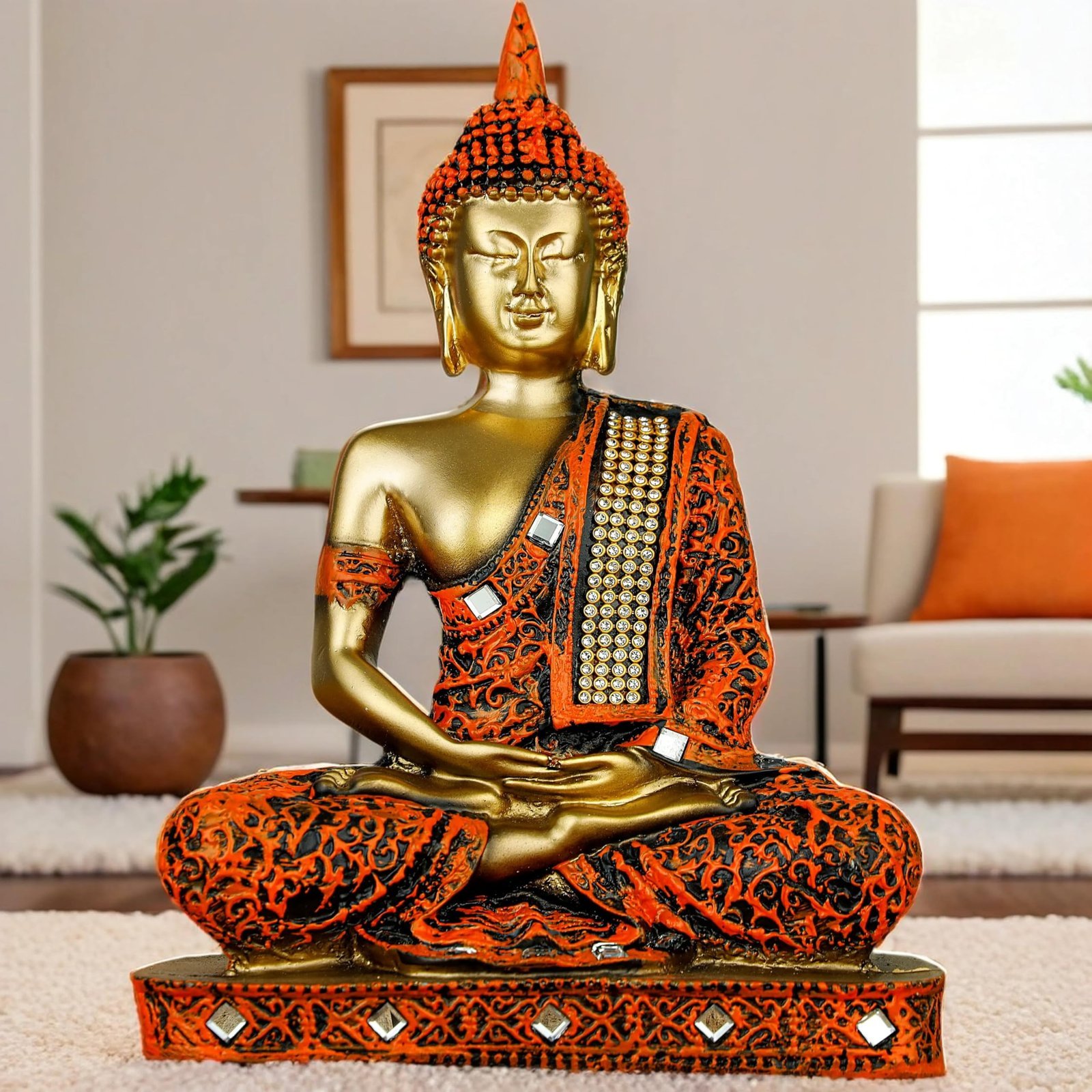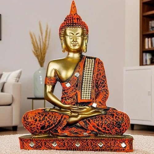 Global Grabbers New 25 Centimetre Meditating Sitting Buddha Statue showpiece Idol Home Decoration Items for Living Room Decor and Gifts (Orange Golden) – Fast Shipping to USA, Canada & India