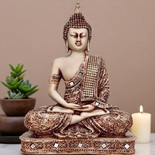 These beautiful lord gautam buddha statues for living room from the house Global Grabbers on Amazon are a wonderful gifts and very beautiful home decor Items for living room bedroom These buddha show pieces for home decor are made From highest grade polyresin material and is handcrafted by skilled artisans using conventional techniques. Everyone wants perfect peace of mind that’s free from ignorance, greed, hatred and other afflictive states. Buddha Idol as home decoration items are always been a great symbol of peace. So, what could be a better gift or a better option to bring home than the idol of Buddha. This Buddha statue is a perfect piece of art for Home decoration and house warming gifts for new home . Elevate your home and garden Decor with our exquisitely crafted Buddha statue, a perfect symbol of peace and spiritual enlightenment. this detailed Buddha statue is designed to bring serenity and mindfulness to any space. Whether placed in your living room, meditation room, office, or garden, its intricate hand-carved features and serene expression will create a calming atmosphere. Ideal for yoga studios and as a thoughtful anniversary gifts for parents wife or housewarming these Buddha statues not only enhances aesthetics but also promotes relaxation and positive energy. Embrace tranquility and spiritual growth by adding this elegant Buddha statue to your new home decor collection today.
