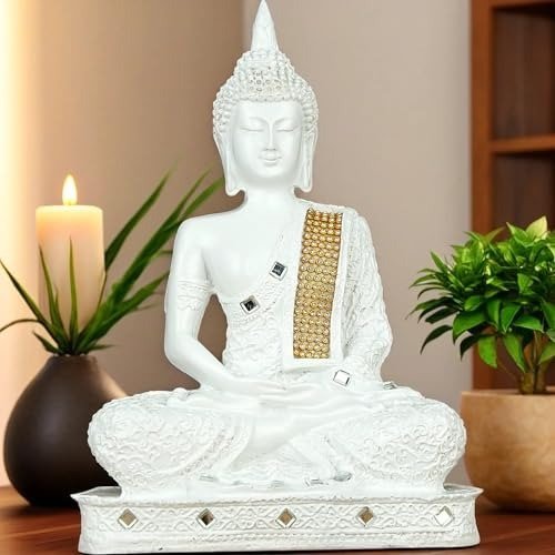 Global Grabbers New 25 Centimetre Meditating Sitting Buddha Statue showpiece Idol Home Decoration Items for Living Room Decor and Gifts (White) – Fast Shipping to USA, Canada & India