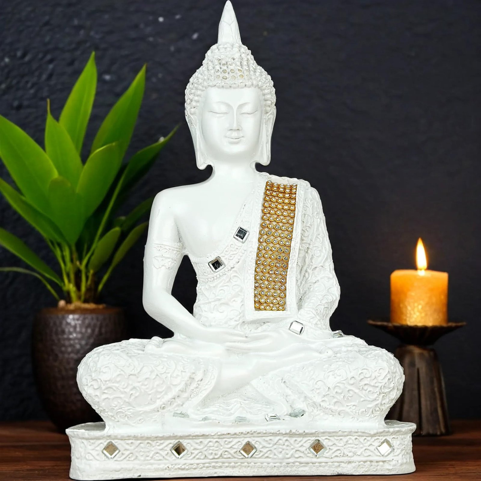 These beautiful lord gautam buddha statues for living room from the house Global Grabbers on Amazon are a wonderful gifts and very beautiful home decor Items for living room bedroom These buddha show pieces for home decor are made From highest grade polyresin material and is handcrafted by skilled artisans using conventional techniques. Everyone wants perfect peace of mind that’s free from ignorance, greed, hatred and other afflictive states. Buddha Idol as home decoration items are always been a great symbol of peace. So, what could be a better gift or a better option to bring home than the idol of Buddha. This Buddha statue is a perfect piece of art for Home decoration and house warming gifts for new home . Elevate your home and garden Decor with our exquisitely crafted Buddha statue, a perfect symbol of peace and spiritual enlightenment. this detailed Buddha statue is designed to bring serenity and mindfulness to any space. Whether placed in your living room, meditation room, office, or garden, its intricate hand-carved features and serene expression will create a calming atmosphere. Ideal for yoga studios and as a thoughtful anniversary gifts for parents wife or housewarming these Buddha statues not only enhances aesthetics but also promotes relaxation and positive energy. Embrace tranquility and spiritual growth by adding this elegant Buddha statue to your new home decor collection today.