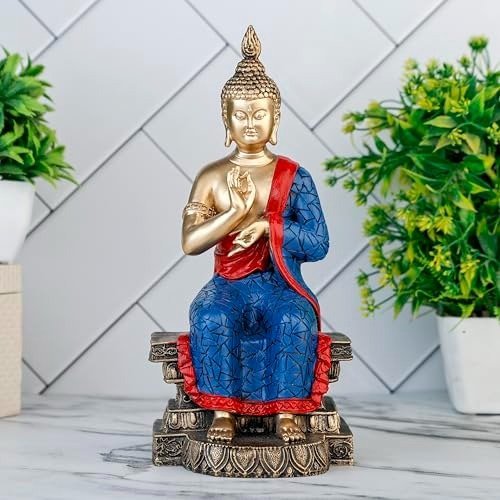 Global Grabbers New Buddha Statue showpiece Idol Home Decor Items for Living Room and Gifts (Blue Golden) – Fast Shipping to USA, Canada & India