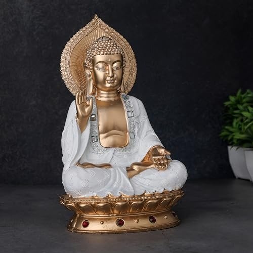 Global Grabbers New Sitting Buddha Statue showpiece Idol Home Decor Items for Living Room and Gifts (White Golden) – Fast Shipping to USA, Canada & India