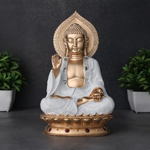 These beautiful lord gautam buddha statues for living room from the house of Global Grabbers on Amazon are a wonderful gifts and very beautiful home decor Items for living room bedroom These buddha show pieces for home decor are made From highest grade polyresin material and is handcrafted by skilled artisans using conventional techniques. Everyone wants perfect peace of mind that’s free from ignorance, greed, hatred and other afflictive states. Buddha Idol as home decoration items are always been a great symbol of peace. So, what could be a better gift or a better option to bring home than the idol of Buddha. This Buddha statue is a perfect piece of art for Home decoration and house warming gifts for new home . Elevate your home and garden Decor with our exquisitely crafted Buddha statue, a perfect symbol of peace and spiritual enlightenment. this detailed Buddha statue is designed to bring serenity and mindfulness to any space. Whether placed in your living room, meditation room, office, or garden, its intricate hand-carved features and serene expression will create a calming atmosphere. Ideal for yoga studios and as a thoughtful anniversary gifts for parents wife or housewarming these Buddha statues not only enhances aesthetics but also promotes relaxation and positive energy. Embrace tranquility and spiritual growth by adding this elegant Buddha statue to your new home decor collection today.