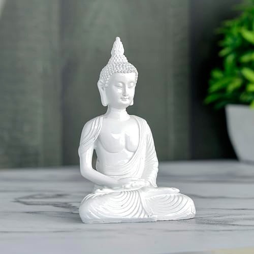 Global Grabbers New Sitting Meditating Buddha Statue showpiece Idol Home Decor Items for Living Room and Gifts (White) – Fast Shipping to USA, Canada & India