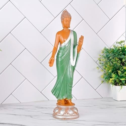 Global Grabbers New Standing Buddha Statue showpiece Idol Home Decor Items for Living Room and Gifts (Green Brown) – Fast Shipping to USA, Canada & India
