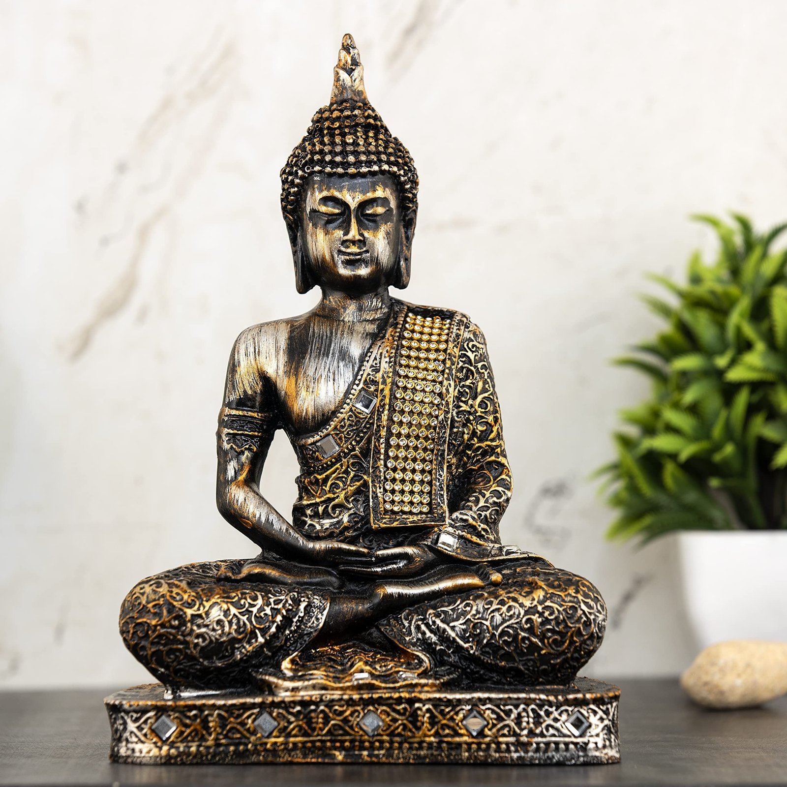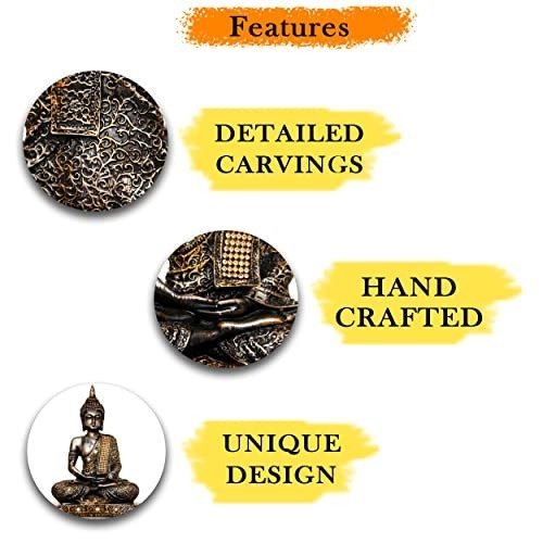 This beautiful Meditating Buddha Idol Statue Showpiece from Global Grabbers on Amazon is a Wonderful Gifting and Home Decor Item Which is Ideal to keep in your Study Room or living room, Pooja Room or in a showcase, This showpiece of Buddha in a meditating posture is made From High Quality polyresin and is handcrafted by skilled artisans using conventional techniques. This Buddha statue is a perfect piece of art for Home decoration, Office decoration, Living room decoration, Bedroom decoration, Kitchen decoration, Hall decoration, dining room decoration, dinning table decoration, balcony decoration, Garden Decoration. It can be a Perfect Gift and can be gifted as a Gift for Brother, Gift For Sister, gift for marriage Couple, Gift for house warming ceremony, Gift for mother, Gift for mom, Gift for sister, Gift for brother, Gift for girls, Gift for boys, Gifting Items for home decoration and Much More it can be used to full fill almost every Gifting and home Decor Needs.
