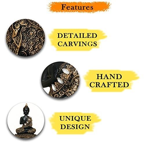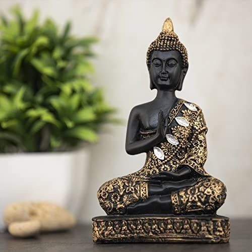 Global Grabbers Polyresin Sitting Buddha Idol Statue Showpiece for Home Decor Decoration Gift Gifting Items-GOL_BLK-BS3-(00) – Fast Shipping to USA, Canada & India