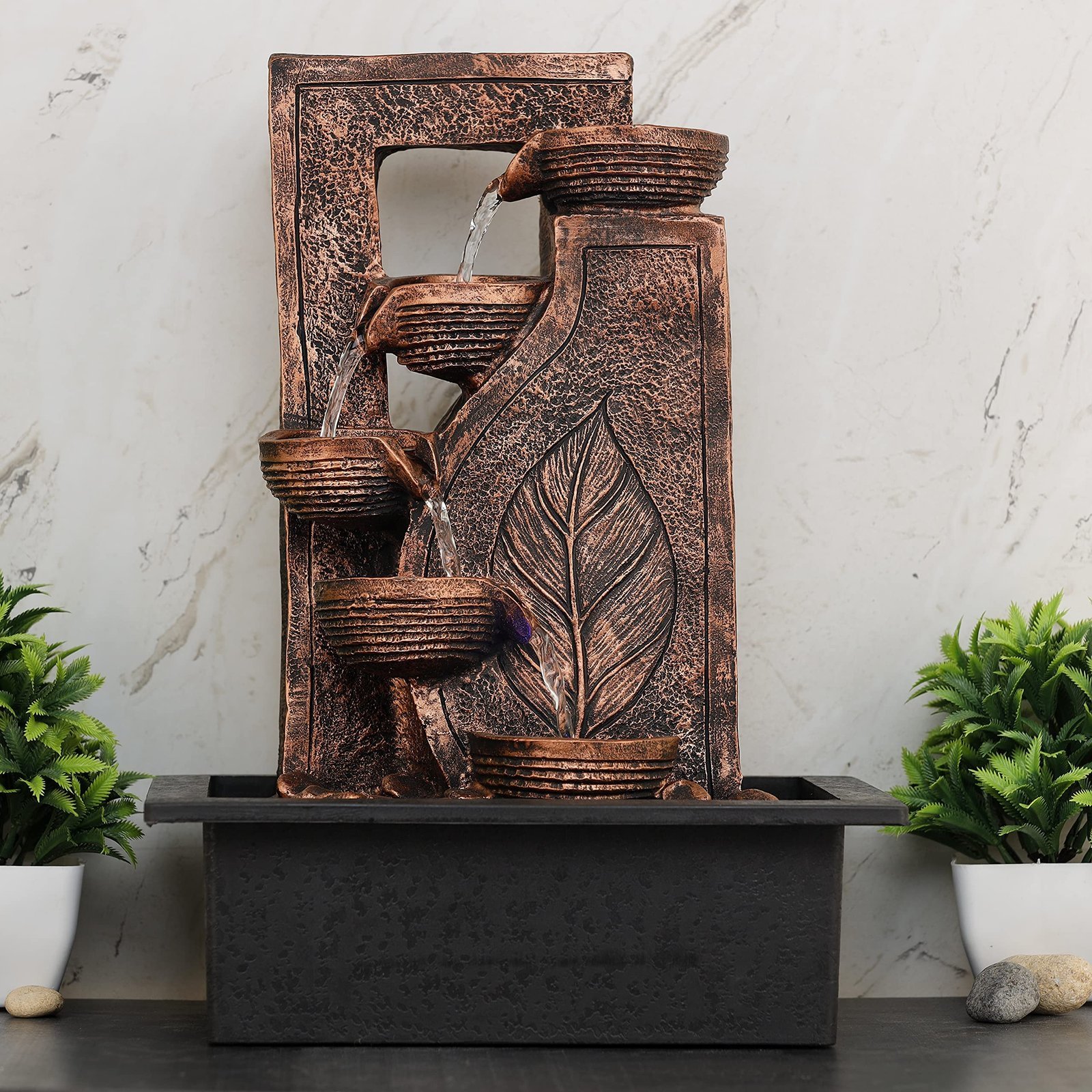 Global Grabbers Polyresin Table Top Indoor Outdoor Water Fall Fountain with LED Lights Home Decor Decoration Gift Gifting Items-A_COP-SF31 – Fast Shipping to USA, Canada & India