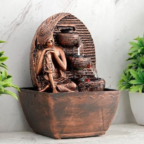 Water Fountains add an essence of beauty and charm to your interiors. This Water Fountain By Global Grabbers On ‘Amazon’ is not just limited to your living area, but can also be added as decor piece For Bedroom, Kitchen, Dining, Balcony and in the Office. The sound of water fall from Water Fountain is believed to soothe and calm the ambience and also bring positive aura to the environment. It can also be a perfect gift for your colleagues, family and friends during events.The calming sound of naturally flowing water are relaxing and restorative, which provides perfect ambience of relaxation and meditation. Our Innovative Water indoor Fountains are the perfect showpiece item to enhance the beauty of your house. It brings peace, calm and positivity to your indoors. Indoor fountain For Home Decoration is an ideal gift with best wishes to your family, parents, friends, neighbours, etc. We trust our products and assure to give you the best quality. Add this restful, Statue with tabletop fountain to your home or office to experience natural water sound. It?s easy to close your eyes and imagine you?re near by a real river or stream This water fountain is made up of high quality material and will definitely add elegance to your Home/Office Decor.