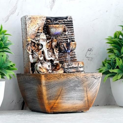 Global Grabbers Polyresin Table Top Indoor Outdoor Water Fall Fountain with LED Lights Home Decor Decoration Gift Gifting Items-A_ORG-SF21 – Fast Shipping to USA, Canada & India