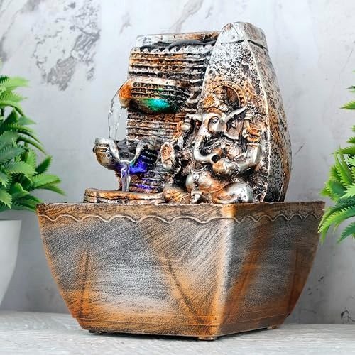 Global Grabbers Polyresin Table Top Indoor Outdoor Water Fall Fountain with LED Lights Home Decor Decoration Gift Gifting Items-A_ORG-SF22 – Fast Shipping to USA, Canada & India