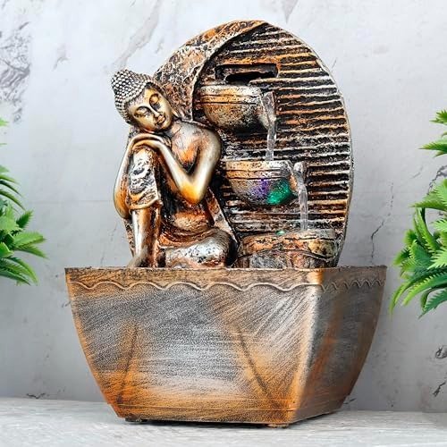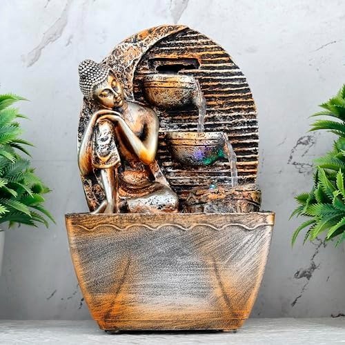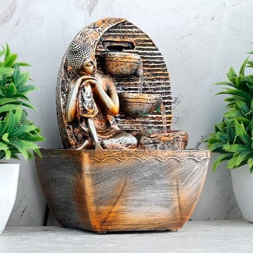 Water Fountains add an essence of beauty and charm to your interiors. This Water Fountain By Global Grabbers On ‘Amazon’ is not just limited to your living area, but can also be added as decor piece For Bedroom, Kitchen, Dining, Balcony and in the Office. The sound of water fall from Water Fountain is believed to soothe and calm the ambience and also bring positive aura to the environment. It can also be a perfect gift for your colleagues, family and friends during events.The calming sound of naturally flowing water are relaxing and restorative, which provides perfect ambience of relaxation and meditation. Our Innovative Water indoor Fountains are the perfect showpiece item to enhance the beauty of your house. It brings peace, calm and positivity to your indoors. Indoor fountain For Home Decoration is an ideal gift with best wishes to your family, parents, friends, neighbours, etc. We trust our products and assure to give you the best quality. Add this restful, Statue with tabletop fountain to your home or office to experience natural water sound. It?s easy to close your eyes and imagine you?re near by a real river or stream This water fountain is made up of high quality material and will definitely add elegance to your Home/Office Decor.